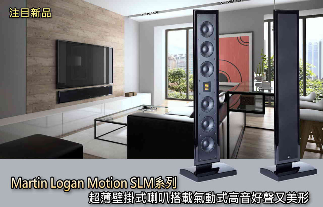 Martin Logan Motion SLM系列僅約5公分左右的音箱厚度,甚至比平面電視壁掛時還要薄!