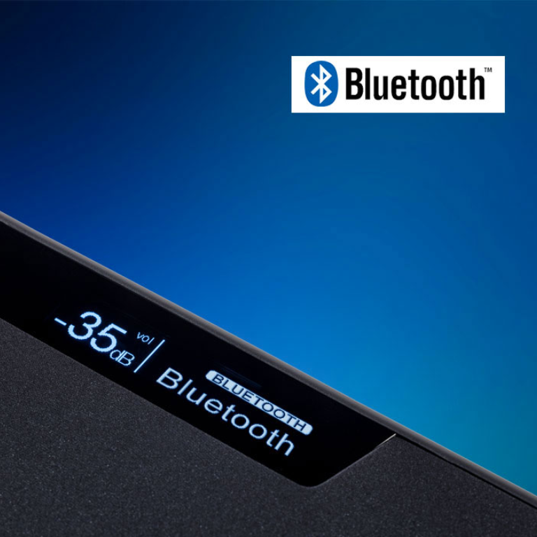 可將具備藍牙功能的裝置連接至 soundbar,進行無線音訊播放。MartinLogan soundbar 採用 Bluetooth 4.2 傳輸技術,搭載 apt-X™ 編碼,可確保高音質串流表現。此高效能藍牙解決方案採用專利的無損壓縮演算法,支援最高 48kHz / 16-bit 的音訊格式,提供接近 CD 音質的聆聽體驗。