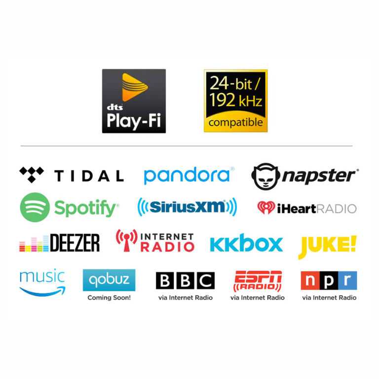 DTS Play-Fi 技術讓你能透過現有 Wi-Fi 網路,無線串流高解析音樂(最高支援 24-bit / 192kHz),享受真正自由且靈活的音樂播放體驗。與許多封閉式無線平台不同,DTS Play-Fi 採開放式架構,可與其他頂級音響品牌的 DTS Play-Fi 相容設備自由搭配整合,構建專屬音響生態系。無論是個人音樂收藏或各大音樂串流平台*,皆可從 Android、iOS、Kindle Fire 或 PC 等各種裝置輕鬆播放音樂。