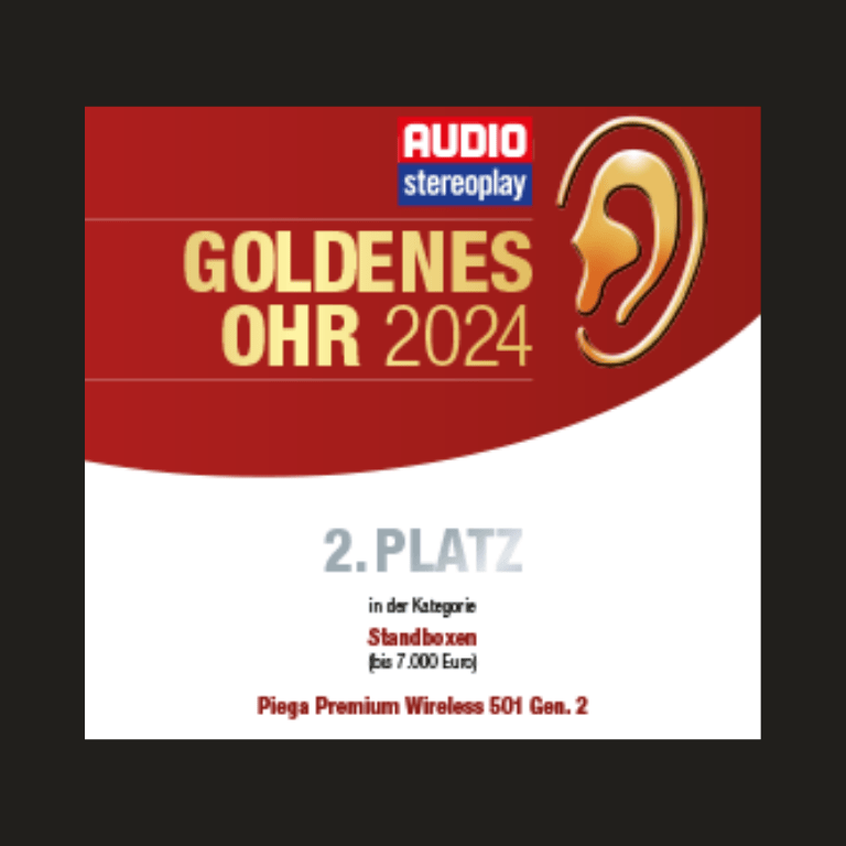 Premium Wireless Gen2 系列憑藉其聲音表現與設計工藝獲得業界高度肯定,榮獲 AUDIO StereoPlay Goldenes Ohr 2024 第二名,展現 PIEGA 在聲學技術、工藝品質與設計美學上的卓越實力。